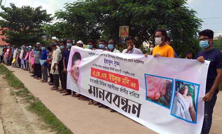 কিশোরগঞ্জে যুবলীগ নেতা ইউসুফ মনি হত্যায় আসামিদের বিচারের দাবিতে মানববন্ধন
