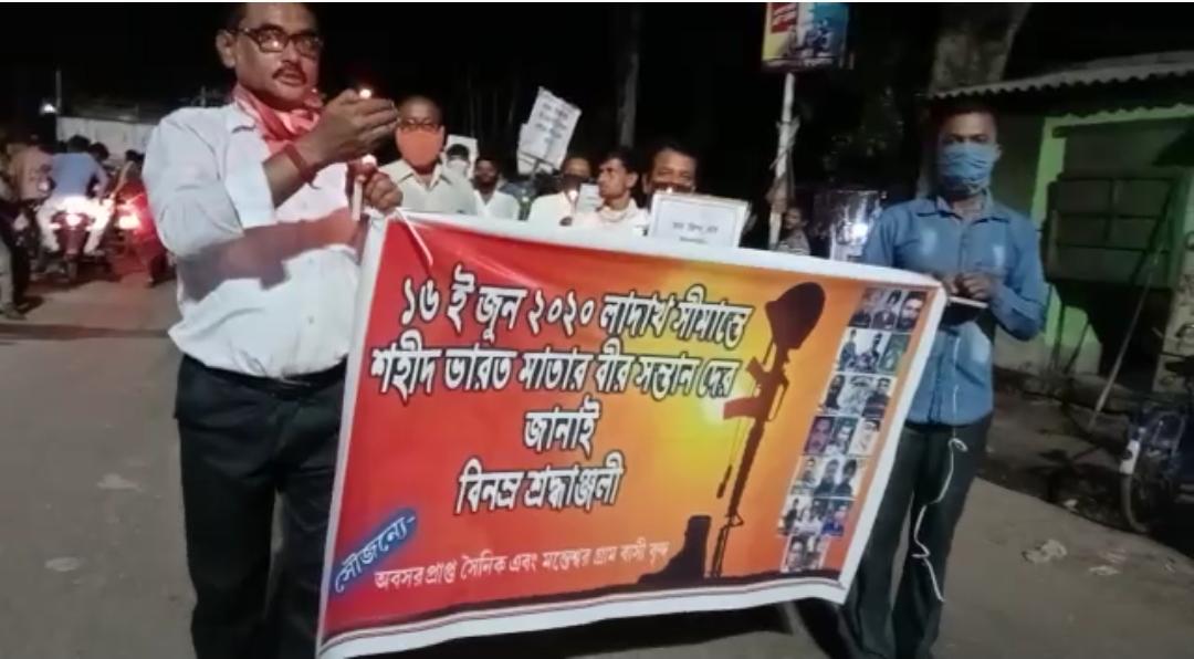 এক মিনিট নীরবতা পালন করে,শহীদদের প্রতি শ্রদ্ধা জানাতে স্মৃতি চারন করে মোমবাতি মিছিলটি শেষ করেন। স্মৃতি চারন এর পর প্রাক্তন সেনা বাহিনীর পক্ষ হইতে সন্দীপ মন্ডল, বাবলু রায়, সাধন ঘোষ ও আরও অনেকে।