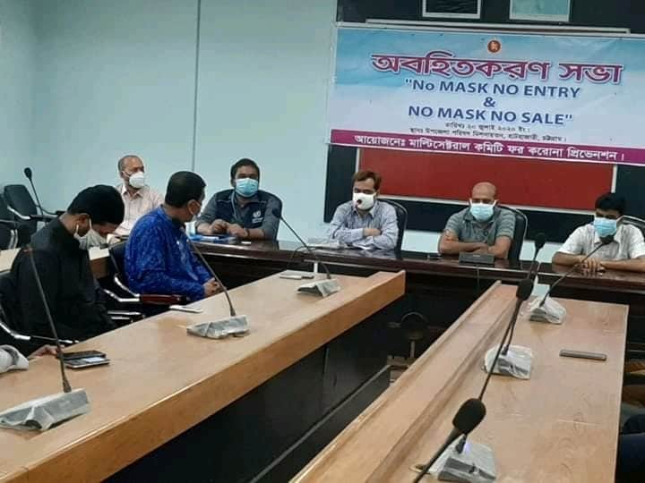 চট্টগ্রামের হাটহাজারী উপজেলা নির্বাহী কর্মকর্তা রুহুল আমিন এক ভিন্নধর্মী উদ্যোগ গ্রহণ করেছে।করোনাভাইরাস সংক্রামণের কারণে বেশকিছু প্রতিষ্ঠান ও গণপরিবহন দীর্ঘদিন বন্ধ থাকলেও এখন আস্তে আস্তে সবকিছু খুলে দেওয়া হচ্ছে।স্বাস্থ্যবিধি মেনে গণপরিবহন চলাচলও স্বাভাবিক করা হয়েছে।কিন্তু মানুষের সচেতনা আগের তুলনায় অনেকাংশ কমে গেছে।তাই উপজেলা নির্বাহী অফিসার রুহুল আমিন গতকাল উপজেলার কয়েকটি ব্যবসায়ী সংগঠন ও ব্যাংক সহ বিভিন্ন প্রতিষ্ঠানের প্রতিনিধিদের ডেকে করোনা সংক্রামণরোধে সকলের সহযোগিতা কামনা করেছেন। মাক্স ব্যতীত কোন ধরণের সেবা প্রদান না করার জন্য সকলকে অবিহিত করছেন।গতকাল ২০ জুলাই No Mask No Entry,No Mask No Sale”শিরোনামে অভিহিত করণ সভা অনুষ্ঠিত হয়েছে।
