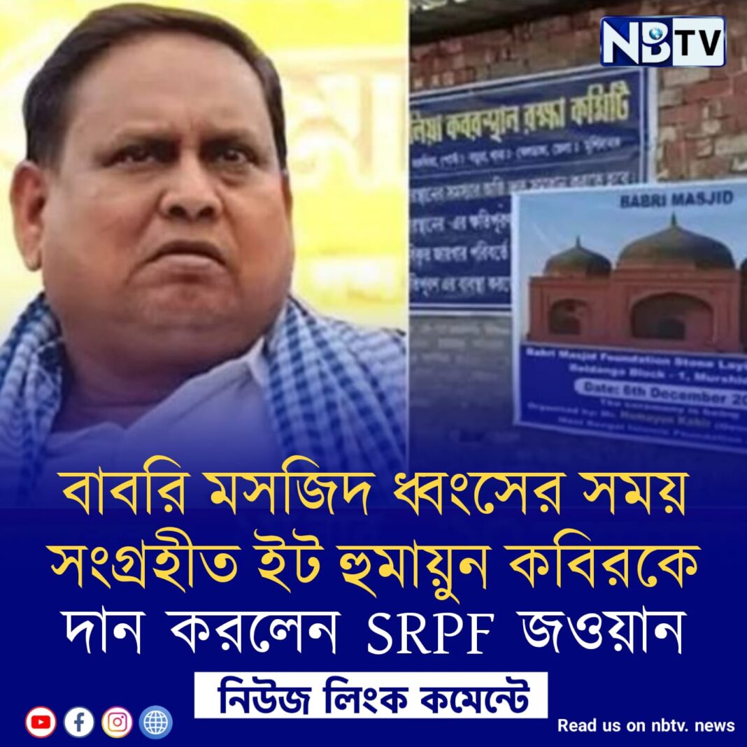 ইঁটের বদলে ‘পাটকেল’ নয়, ইঁটই বেছে নিলেন প্রাক্তন সিআরপিএফ জওয়ান। সম্প্রতি বেলডাঙায় বাবরি মসজিদ পুন:নির্মাণের ঘোষণা করেছেন ভরতপুরের বিধায়ক হুমায়ুন কবীর। তাঁর বক্তব্য অনুসারে, বহু ধর্মপ্রাণ মুসলিম দানও করছেন দুহাত ভরে। ৩৭ লক্ষ টাকারও বেশি অনুদান স্বহস্তে দান করেছেন সাধারণ মানুষ। এবার ঐতিহাসিক পদক্ষেপ নিলেন এক প্রাক্তন সেনাকর্মী। জানা গেছে, বাবরি মসজিদ ধ্বংসের সময় তাঁর স্মৃতিস্বরূপ একটি ইঁট সংগ্রহ করে রেখেছিলেন তিনি। সেটিই এই নির্মাণ কার্যে দান হিসেবে দিতে চান ওই প্রাক্তন সিআরপিএফ জওয়ান।