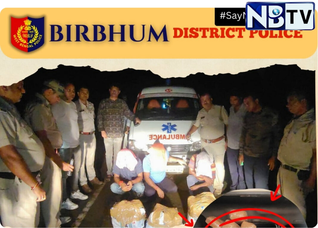 বীরভূমের ইলামবাজারে পুলিশের তৎপরতায় ধরা পড়ল গাঁজা পাচারচক্র। ঘটনায় মূল তিনজন অভিযুক্তকে গ্রেপ্তার করে পুলিশ। অভিযোগ, অ্যাম্বুলেন্সে করে প্রায় ২৫ কেজি গাঁজা পাচার করা কালীন ধরা পড়ে তিন অভিযুক্ত। ঘটনাটি ঘটেছে ইলামবাজার থেকে বোলপুর যাওয়ার রাস্তায়, কবি জয়দেব মহাবিদ্যালয় ও ধল্লা বাসস্ট্যান্ডের মাঝামাঝি এলাকায়। পুলিশের সন্দেহ হয় একটি অ্যাম্বুলেন্স দেখে। তারপর সেটিকে থামিয়ে তল্লাশি চালানো হয়। তল্লাশির সময় গাড়ির ভেতর থেকে উদ্ধার হয় ২৫ কেজি গাঁজা। সঙ্গে সঙ্গে অ্যাম্বুলেন্সে থাকা তিনজনকে গ্রেফতার করে ইলামবাজার থানার পুলিশ। একইসঙ্গে গাড়িটিও আটক করা হয়েছে।