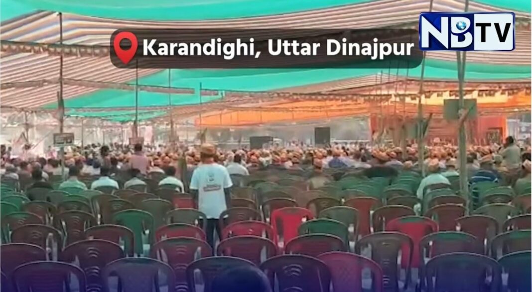 উত্তর দিনাজপুরের করণদিঘিতে বিজেপির ডাকা একটি ‘পরিবর্তন সভা’ ঘিরে জনসমাগমের অভাব নিয়ে রাজনৈতিক মহলে আলোচনা শুরু হয়েছে। স্থানীয় সূত্রের দাবি, সভার জন্য আগাম প্রস্তুতি হিসেবে বিপুল সংখ্যক চেয়ার বসানো হলেও, অনুষ্ঠানের সময় তার একটি বড় অংশই খালি পড়ে থাকতে দেখা যায়।
