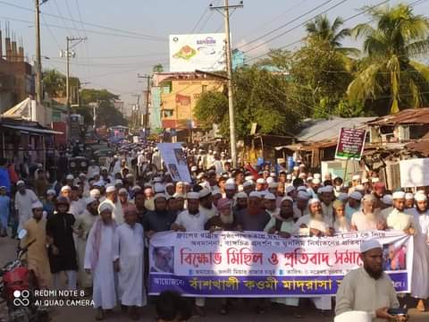 বাঁশখালী কওমী মাদরাসা সংস্থার উদ্যোগে আয়োজিত বিক্ষোভ সমাবেশে বক্তারা বলেছেন, ফ্রান্সের সরকারী পৃষ্টপোষকতায় প্রিয় নবী সা: অবমাননার মাধ্যমে সারা বিশ্বের মুসলমানদের কলিজায় আঘাত করা হয়েছে। এজন্য ফ্রান্সের প্রেসিডেন্ট ম্যাঁক্রোকে মুসলিম বিশ্বের কাছে অবিলম্বে ক্ষমা চাইতে হবে।
