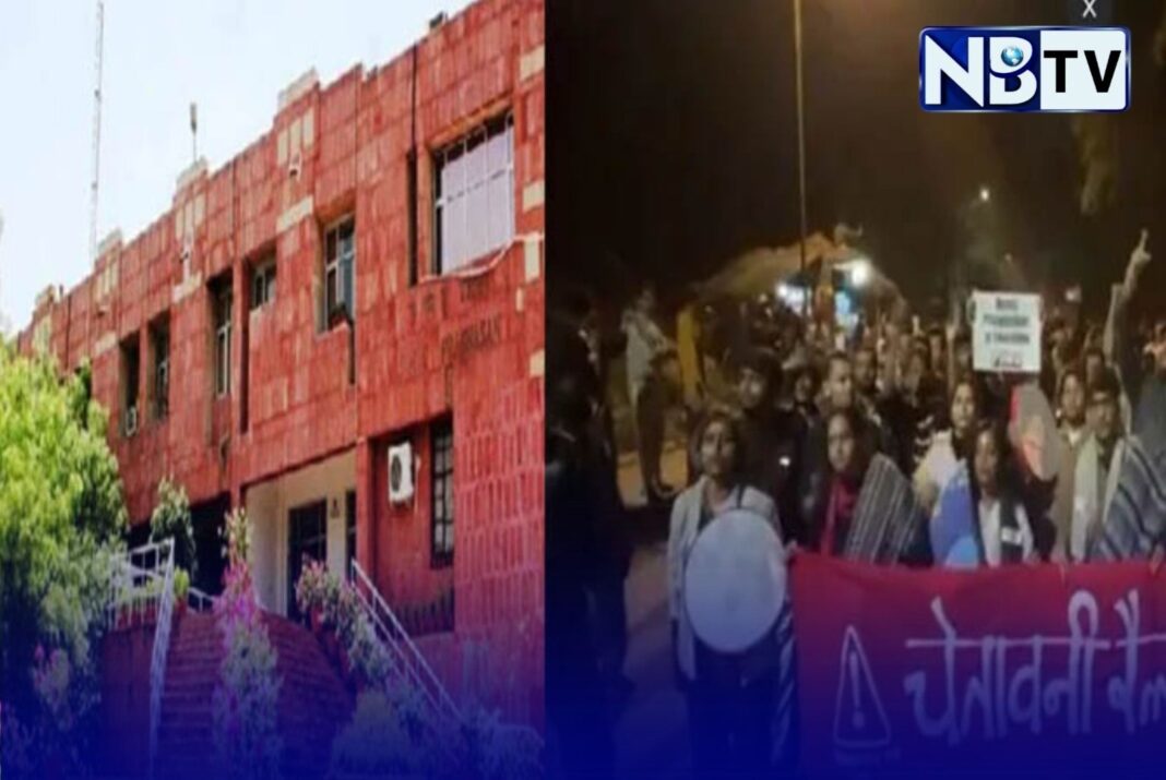 জেএনইউ ক্যাম্পাসে সতর্কতামূলক মিছিল, ব্রাহ্মণ্যবাদের বিরুদ্ধে স্লোগানসহ মোদি-আরএসএসকে আক্রমণ