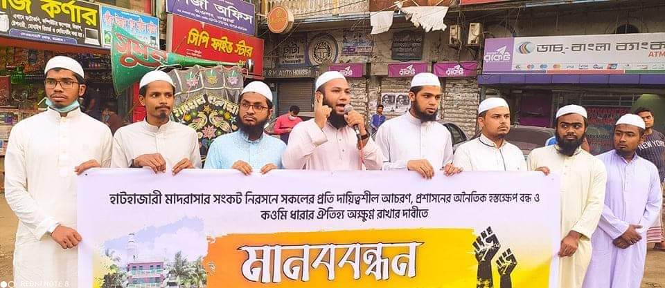 এনবিটিভি ডেস্ক, আলমগীর ইসলামাবাদী, চট্টগ্রাম জেলা প্রতিনিধি : আজ ১৭ সেপ্টেম্বর’২০ বৃহস্পতিবার বিকাল ৫ টায় ইসলামী শাসনতন্ত্র ছাত্র আন্দোলন চট্টগ্রাম মহানগর এর আয়োজনে নগর সভাপতি রিদওয়ানুল হক শামসীর সভাপতিত্বে ও সাধারণ সম্পাদক মুহাম্মদ নাজিম উদ্দিন এর সঞ্চালনায় নগরীর দেওয়ানহাট মোড়ে এক মানববন্ধন অনুষ্ঠিত হয়। এতে প্রধান অতিথি হিসেবে বক্তব্য প্রদান করেন ইসলামী শাসনতন্ত্র ছাত্র আন্দোলনের কেন্দ্রীয় সাংগঠনিক সম্পাদক শেখ মুহাম্মাদ আল-আমিন।