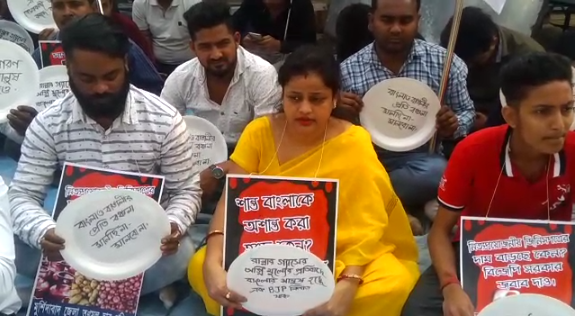 অস্বাভাবিকভাবে নিত্যপ্রয়োজনীয় দ্রব্যের মূল্যবৃদ্ধি হওয়ায় তৃণমূল ছাত্র পরিষদের ধরণা অবস্থান বহরমপুরে